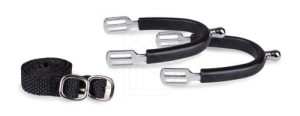 W zestawie znajdują się regulowane paski, umożliwiające stabilne i wygodne dopasowanie do butów jeździeckich.