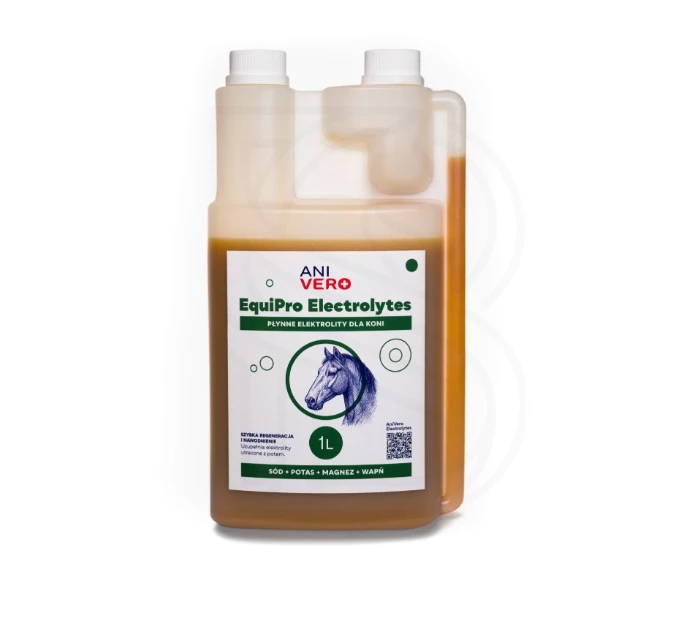 ANIVERO EquiPro ELECTROLYTES to nowoczesny, płynny preparat elektrolitowy dla koni, stworzony z myślą o potrzebach zwierząt narażonych na utratę elektrolitów podczas intensywnego wysiłku, upałów, stresu, transportu oraz zawodów sportowych. Preparat został opracowany przez lekarzy weterynarii, aby wspierać prawidłowe funkcjonowanie organizmu konia, przywracać równowagę wodno-elektrolitową i skracać czas regeneracji po wysiłku.