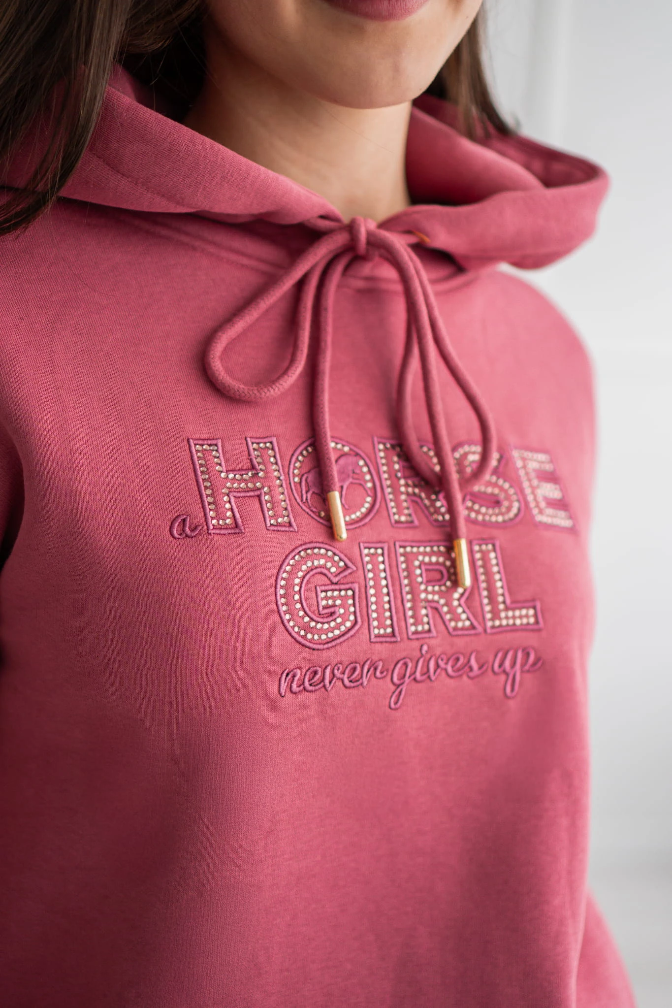 Bluza Horse Girl idealne połączenie komfortu, stylu i miłości do koni! Wykonana z mięsistej, przyjemnej w dotyku bawełny, zapewni Ci ciepło i wygodę w chłodniejsze dni. Unikatowy element stanowi haftowane logo, ozdobione błyszczącymi kryształkami, które dodają bluzce wyjątkowego charakteru i podkreślają Twoją pasję.
