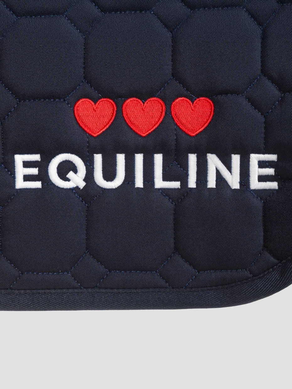 Czaprak wyróżnia się stylowym pikowaniem typu octagon oraz dekoracyjnymi detalami – trzema haftowanymi sercami umieszczonymi nad logo, które symbolizują silną i nierozerwalną więź. Starannie dopracowane wykończenia podkreślają jego unikalny charakter i sprawiają, że model przyciąga uwagę zarówno na treningu, jak i podczas zawodów.