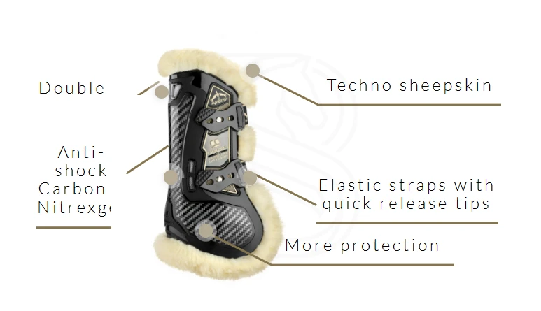 Veredus Carbon Gel Absolute Save The Sheep to kompletny zestaw ochraniaczy klasy premium na przednie i tylne nogi konia (komplet na 4), zaprojektowany dla jeźdźców oczekujących maksymalnej ochrony, wysokiej wentylacji i komfortu w treningu oraz na zawodach. Seria Save The Sheep wykorzystuje wyściółkę Techno Sheepskin – syntetyczną, cruelty-free alternatywę dla naturalnego futra: miękką, oddychającą, łatwą w czyszczeniu i wyjątkowo trwałą.