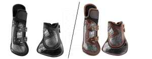 Pełna ochrona przód + tył – przody chronią ścięgna (tendon boots), a tyły zabezpieczają pęciny i newralgiczne strefy tylnej nogi (hind rear/fetlock).