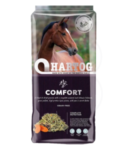 Hartog Comfort to wysokiej jakości sieczka dla koni, która łączy w sobie zalety paszy objętościowej z balancerem, zapewniając kompleksowe wsparcie żywieniowe. Dzięki niskiej zawartości cukru i skrobi, bez dodatku melasy ani zbóż, jest idealna dla koni wrażliwych na cukier, w tym cierpiących na Syndrom Cushinga, insulinooporność czy ochwat.