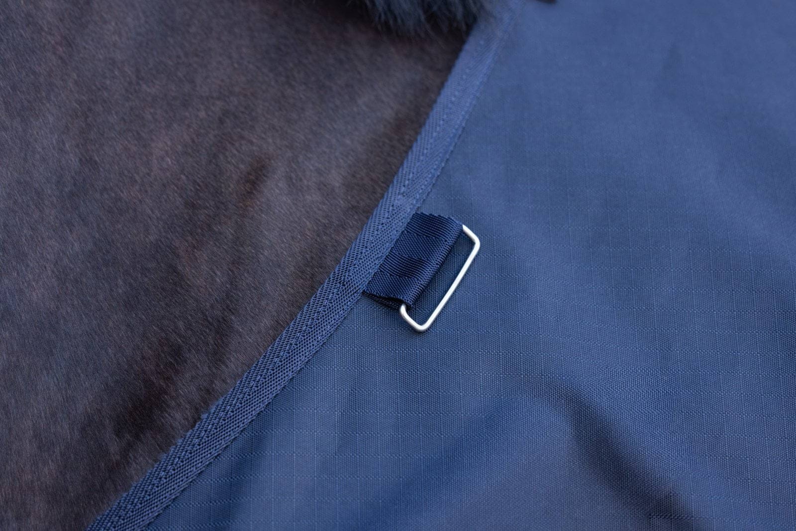 Model RugBe w klasycznym granatowym kolorze jest uniwersalny i łatwo komponuje się z resztą wyposażenia jeździeckiego. To praktyczny wybór do codziennego użytkowania na padoku i w stajni.