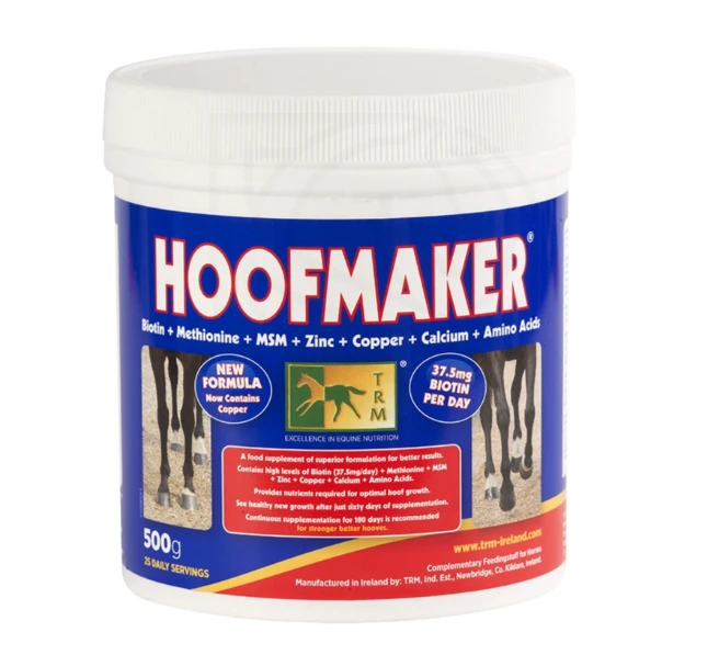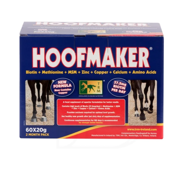 HOOFMAKER zapewnia wszystkich niezbędnych substancji, dla ochrony i odżywienia każdej warstwy rogu kopytowego. Formuła ta, wzbogacona o siarkę zapewnia dostarczenia wszystkich niezbędnych składników do końskiej diety, co skutkuje optymalnym wzrostem kopyta oraz poprawą jego integralności. Suplement ten zawiera skoncentrowane źródła siarki pod postacią aminokwasu - melatoniny oraz MSM.