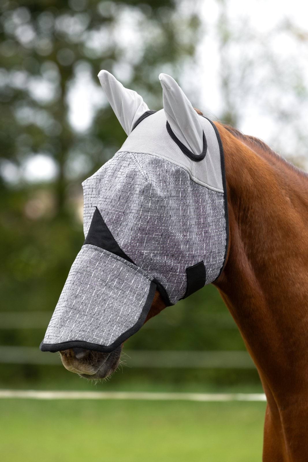 Maska przeciwowadowa dla konia z ochroną UV i osłoną na nozdrza, jasnoszary, Covalliero