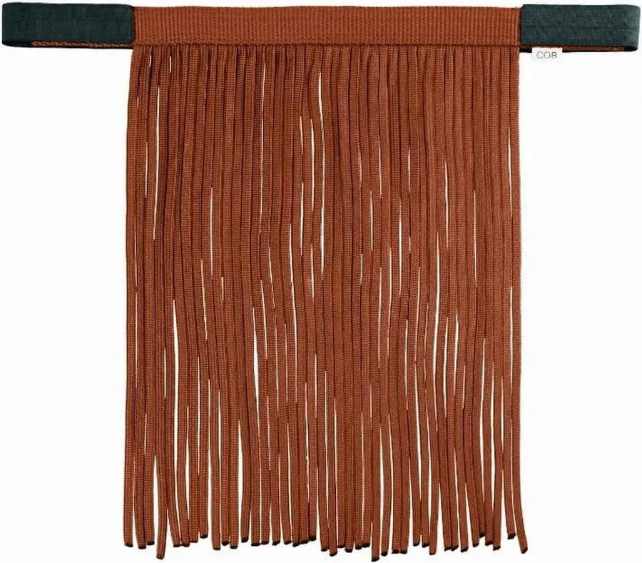 Naczółek został wykonany z trwałego materiału i wyposażony w delikatne frędzelki, które miękko opadają wokół przodu głowy konia. Ruchome frędzelki skutecznie odstraszają muchy i inne owady, jednocześnie nie ograniczając widzenia ani komfortu zwierzęcia. To rozwiązanie szczególnie przydaje się w sezonie letnim, kiedy owady są bardziej aktywne.