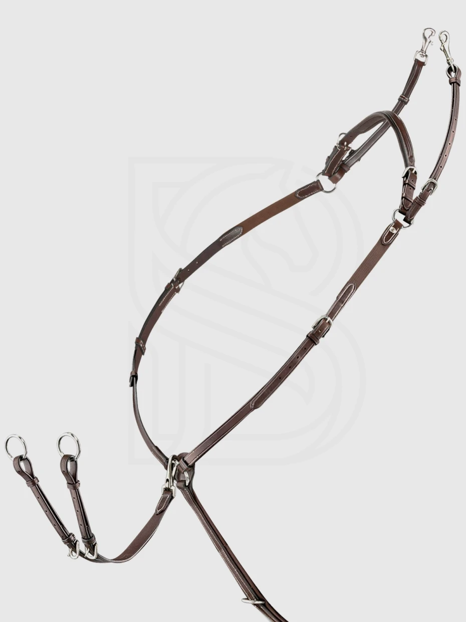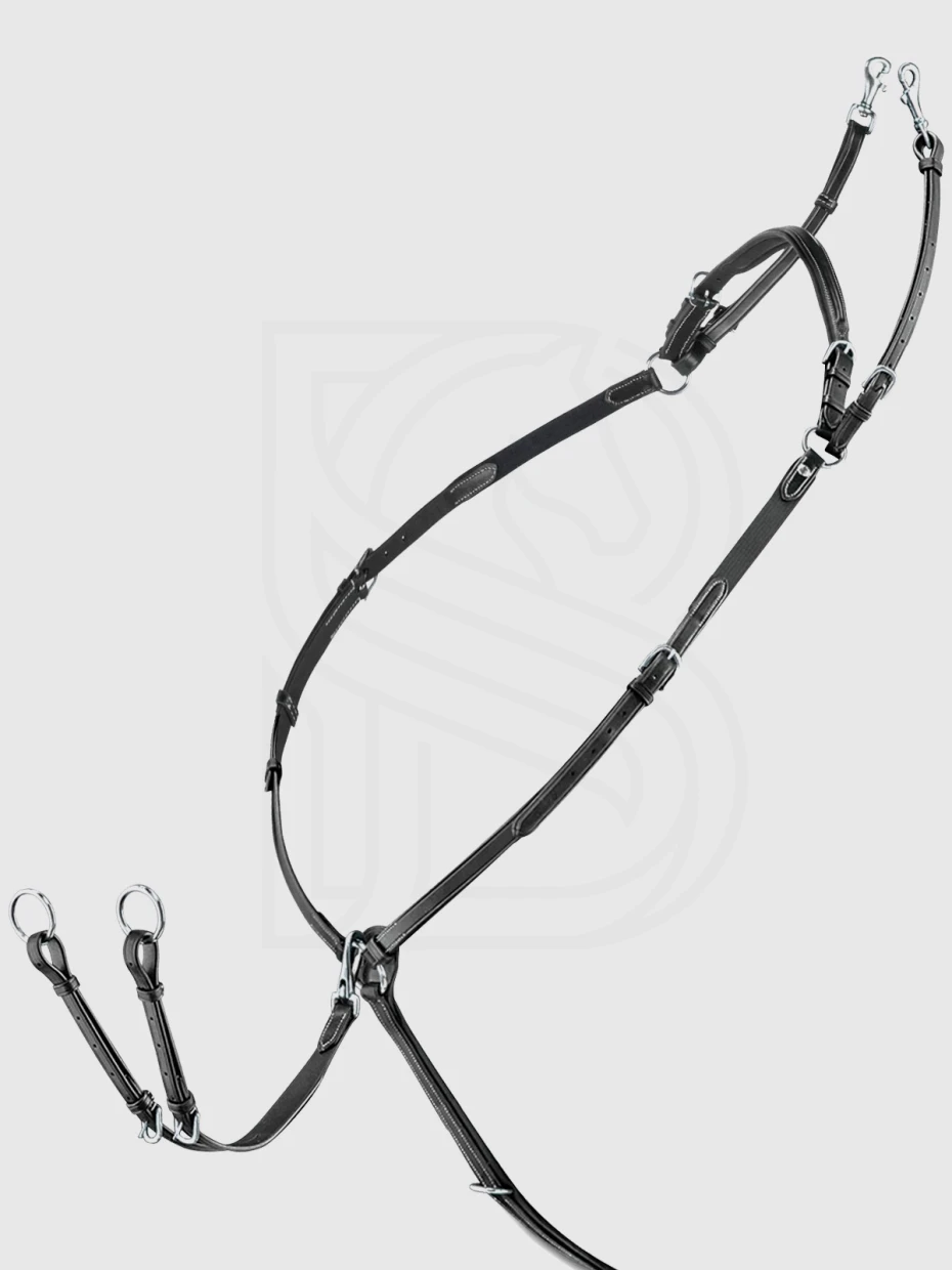 Regulowane paski umożliwiają precyzyjne dopasowanie do budowy konia, a solidne okucia gwarantują bezpieczeństwo i niezawodność nawet podczas intensywnej pracy. Całość została zaprojektowana z dbałością o detale, co przekłada się na estetyczny wygląd i wygodę użytkowania.