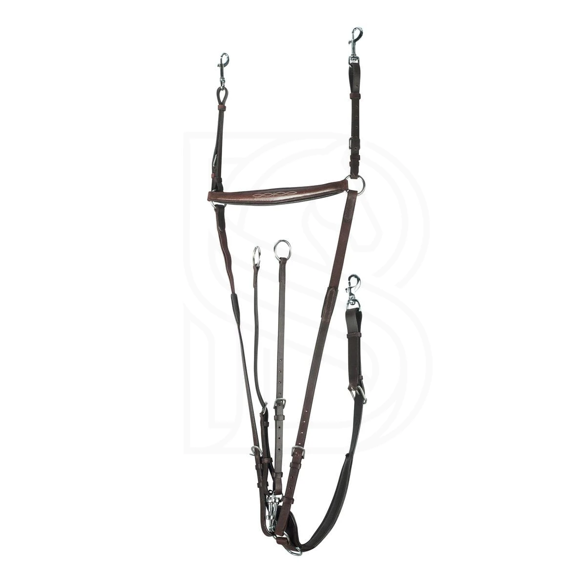 Wbudowany wytok wspiera kontakt i komunikację z koniem, pomagając utrzymać prawidłową linię szyi i głowy w czasie jazdy. Napierśnik został wyprofilowany tak, aby równomiernie rozkładać nacisk, co minimalizuje ryzyko otarć i punktów ucisku, a jednocześnie zapewnia większy komfort pracy zwierzęcia.