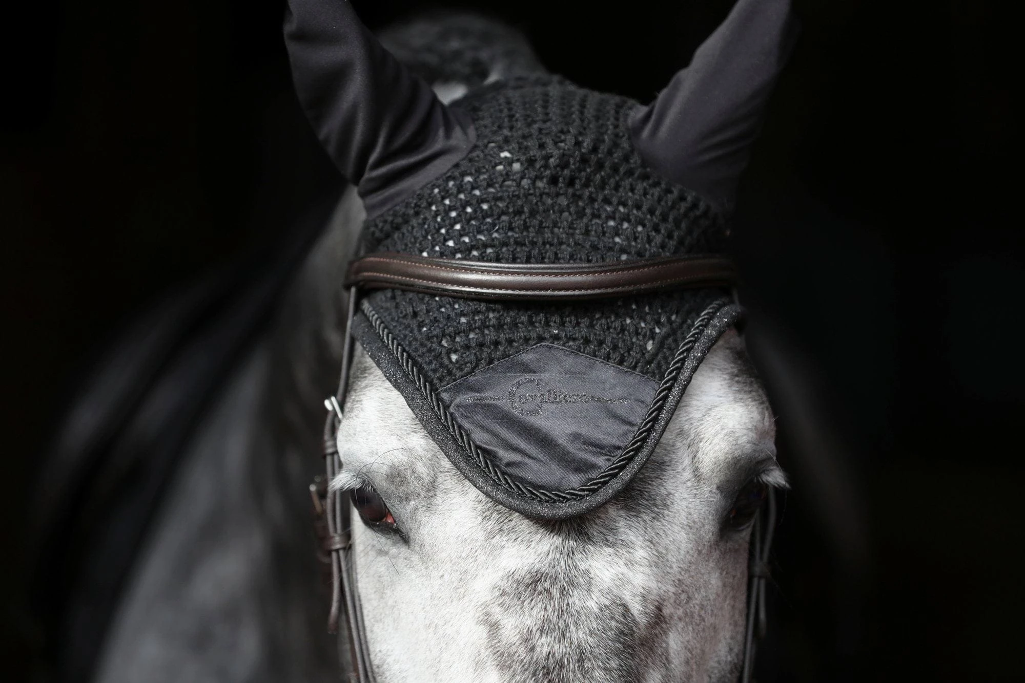 Nauszniki skutecznie chronią uszy konia przed owadami oraz ograniczają rozpraszające bodźce dźwiękowe. Wykonane z miękkiego, oddychającego materiału, zapewniają wysoki komfort noszenia i dobre dopasowanie. Elastyczne wykończenie w okolicy uszu pozwala na swobodne użytkowanie bez ucisku.