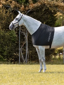 Wykonany z elastycznej, dopasowującej się lycry, zapewnia wygodę noszenia oraz idealne przyleganie do ciała konia, bez ograniczania jego swobody ruchów.