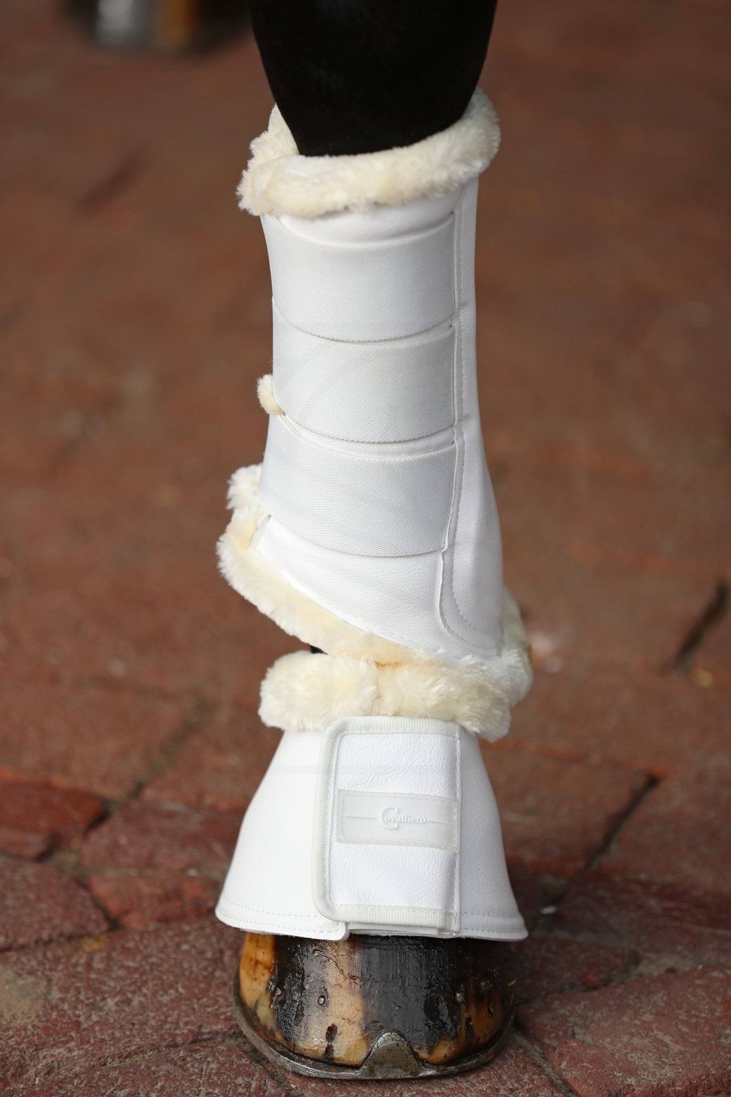 Ochraniacze dla konia Covalliero Pelisa – białe, ze sztucznym futrem