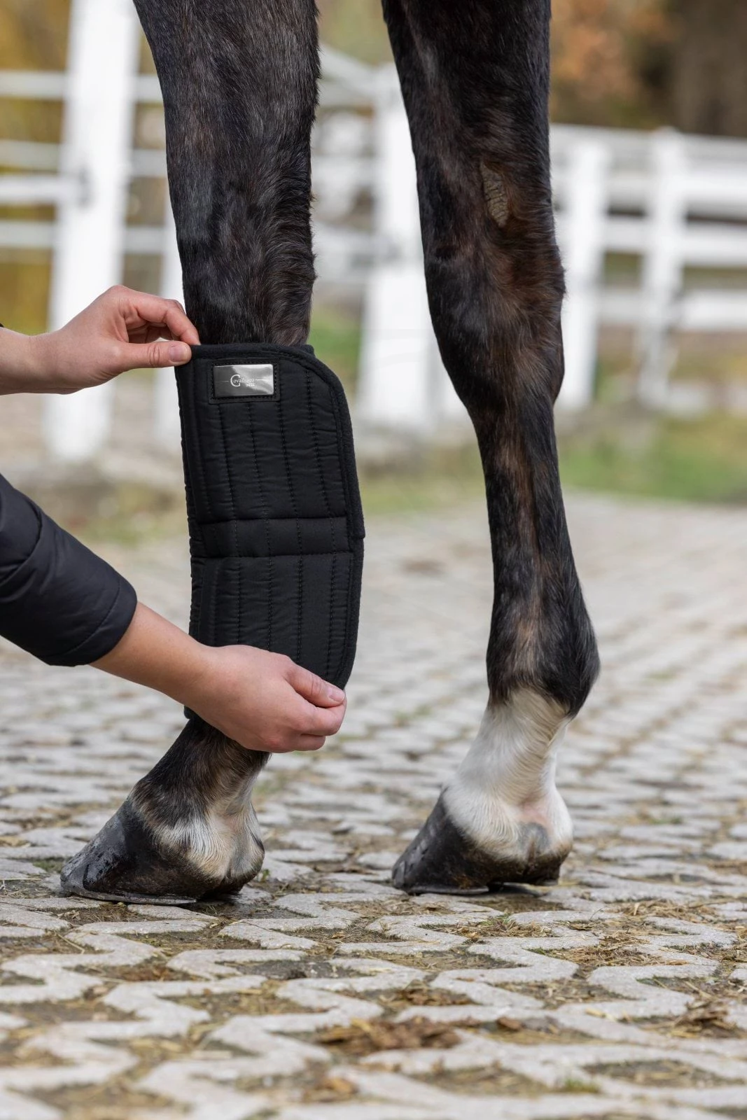 Miękki, a jednocześnie stabilny materiał doskonale dopasowuje się do kształtu nogi konia, równomiernie rozkładając nacisk owijki i zapobiegając punktowemu uciskowi. Grubość 2 cm zapewnia skuteczną amortyzację oraz ochronę przed otarciami i urazami. Klasyczny czarny kolor nadaje podkładkom elegancki, uniwersalny wygląd, pasujący do każdego sprzętu jeździeckiego.