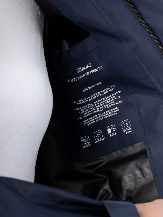 Elegancki, sportowy wygląd z charakterystycznym logo Equiline sprawia, że kurtka idealnie wpisuje się w estetykę nowoczesnej odzieży jeździeckiej.