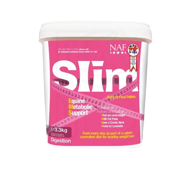 NAF Slim to preparat dla koni i kucyków, które mają problem z utrzymaniem wagi pod kontrolą. Oczywistą reakcją na nadwagę jest redukcja ilości przyjmowanego pokarmu, jednakże, może to spowodować deficyt witaminowo-mineralny.