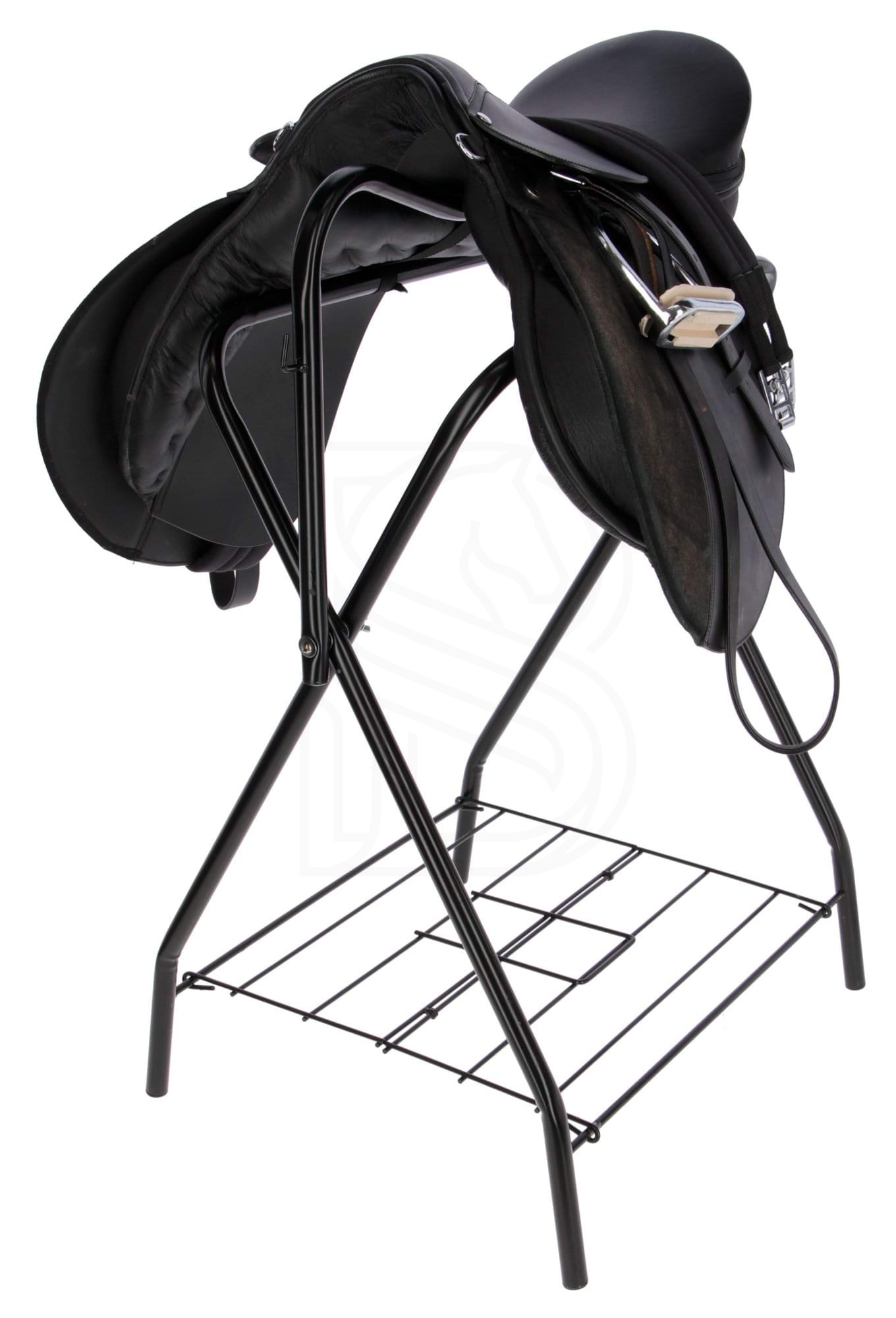 Stojak na siodło to praktyczne i solidne akcesorium, które umożliwia prawidłowe przechowywanie siodła w stajni, siodlarni lub podczas zawodów. Pomaga zachować kształt siodła oraz chroni je przed uszkodzeniami i odkształceniami.