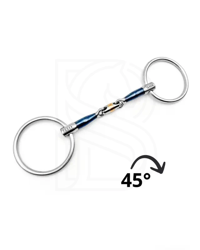 Dwukrotnie łamany ustnik z nachylonymi stawami (45°) — równomierny nacisk i możliwość regulacji sposobu oddziaływania.