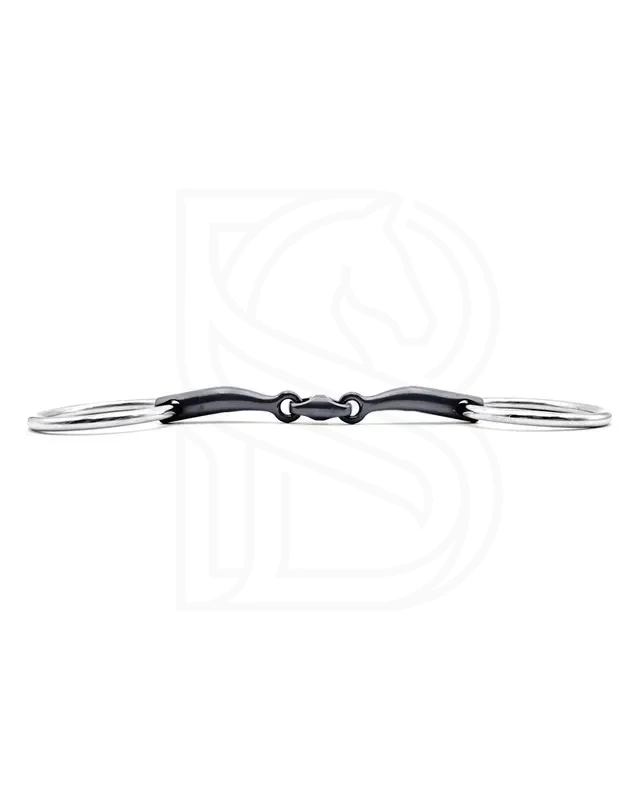 Model Bradoon Loose Rings łączy elementy klasycznego bradoona z luźnymi pierścieniami, które mogą poruszać się niezależnie od ścięgierza, co daje koniowi większą swobodę naturalnej pracy języka i mięśni pyska. Taka konstrukcja sprzyja płynnej, elastycznej reakcji na sygnały wodzy i ułatwia budowanie stabilnego, pewnego kontaktu — również u koni, które reagują nerwowo na pobranie lub mają tendencję do przeciągania wodzy.