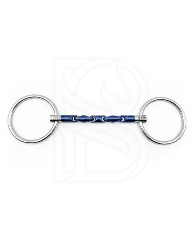 Wędzidła Fager są projektowane tak, aby zawsze leżały poziomo w pysku, bez przesadnego wygięcia do przodu. Utrzymanie punktu równowagi (BP) w odpowiednim miejscu zwiększa efektywność pomocy jeźdźca i stabilność konia. Unikalny kształt chroni również dziąsła i pyska przed otarciami, ranami i podrażnieniami, nawet u wrażliwych koni.