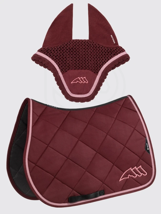 Zestaw EQCHROMA Rombo – czaprak + nauszniki burgundy DR