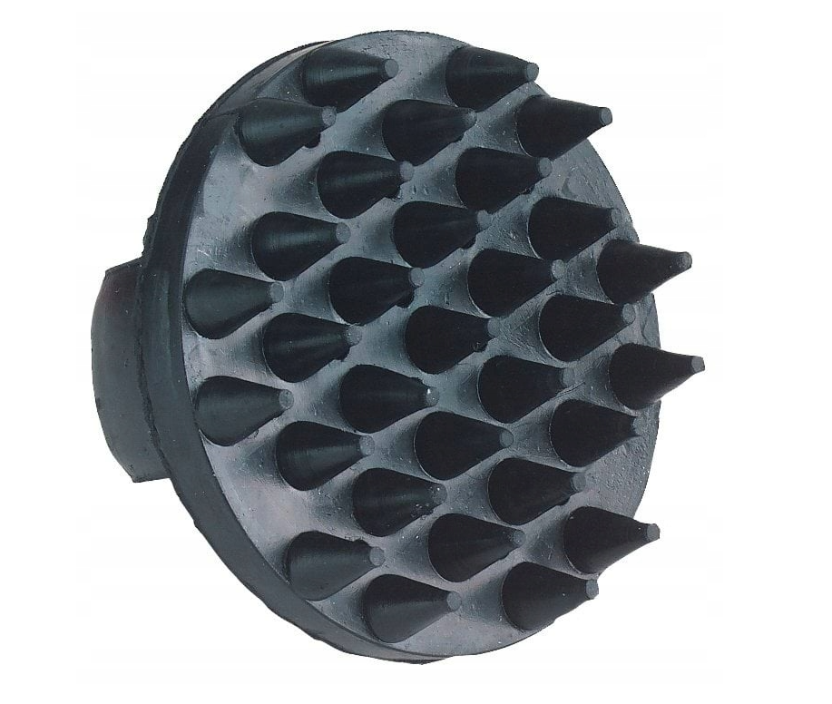 Zgrzebło o długości 11 cm jest lekkie i wygodne w użyciu, a jego ergonomiczny kształt zapewnia pewny chwyt i precyzyjną kontrolę podczas masażu. Czarna, gumowa powierzchnia jest delikatna dla skóry konia, jednocześnie skutecznie rozluźnia napięte partie mięśniowe i usuwa drobne zabrudzenia.