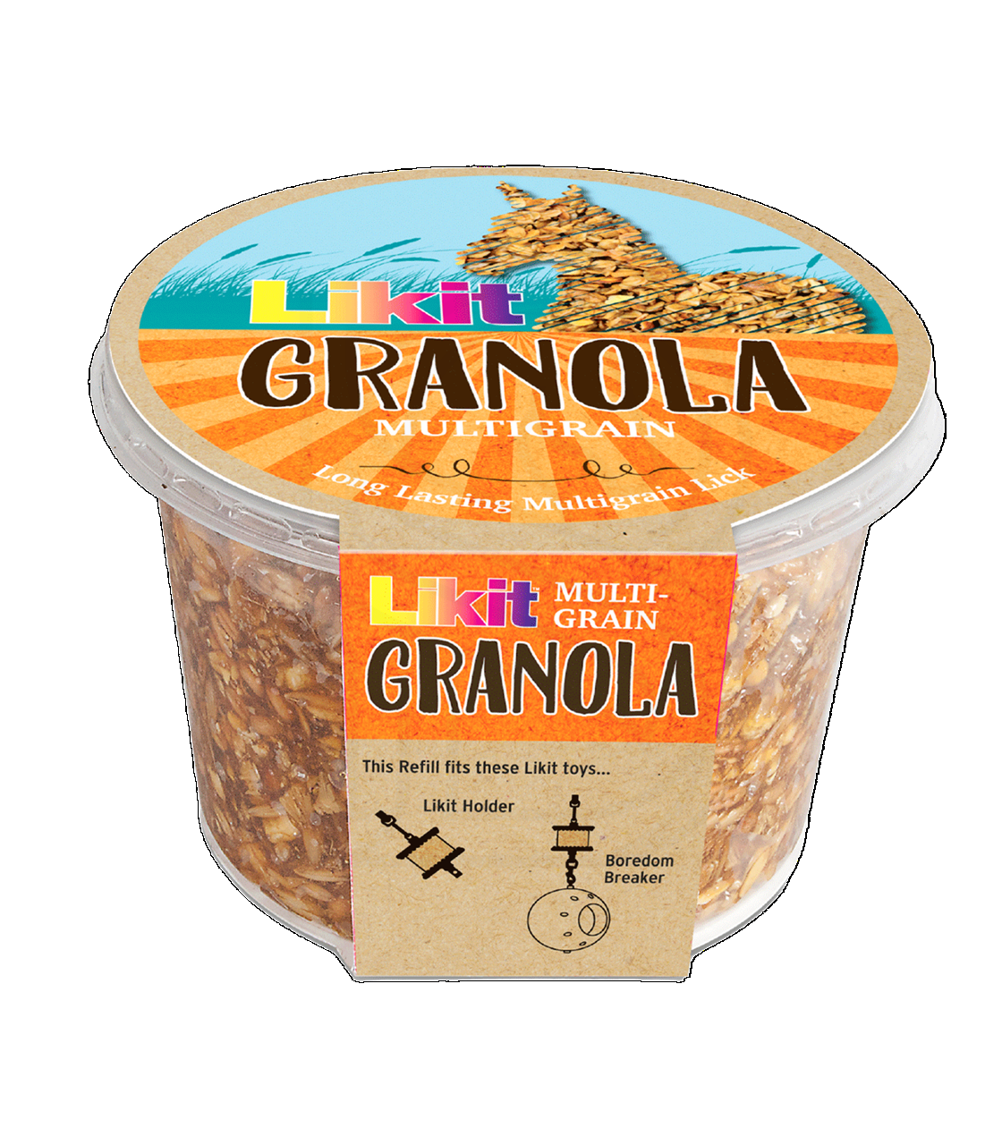 Likit Granola Musli to smakowity przysmak dla koni i kuców, stworzony z myślą o urozmaiceniu codziennego czasu spędzanego w stajni lub na padoku. Produkt łączy atrakcyjną formę z przyjemnym smakiem, pomagając zapewnić zwierzęciu dodatkowe zajęcie i ograniczyć nudę w ciągu dnia.