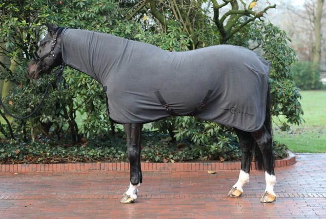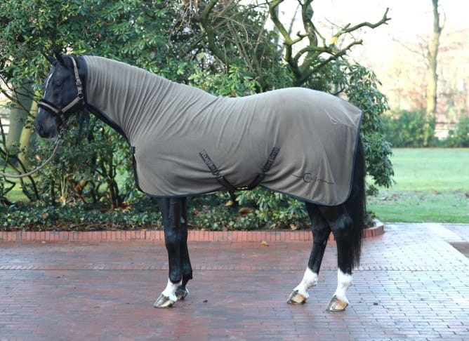 Derka polarowa Covalliero z pasami i kapturem to funkcjonalna derka potreningowa zaprojektowana z myślą o kompleksowym osuszaniu konia po wysiłku, kąpieli lub podczas transportu. Dzięki zastosowaniu miękkiego, oddychającego polaru skutecznie odprowadza wilgoć z powierzchni ciała, jednocześnie chroniąc przed wychłodzeniem.