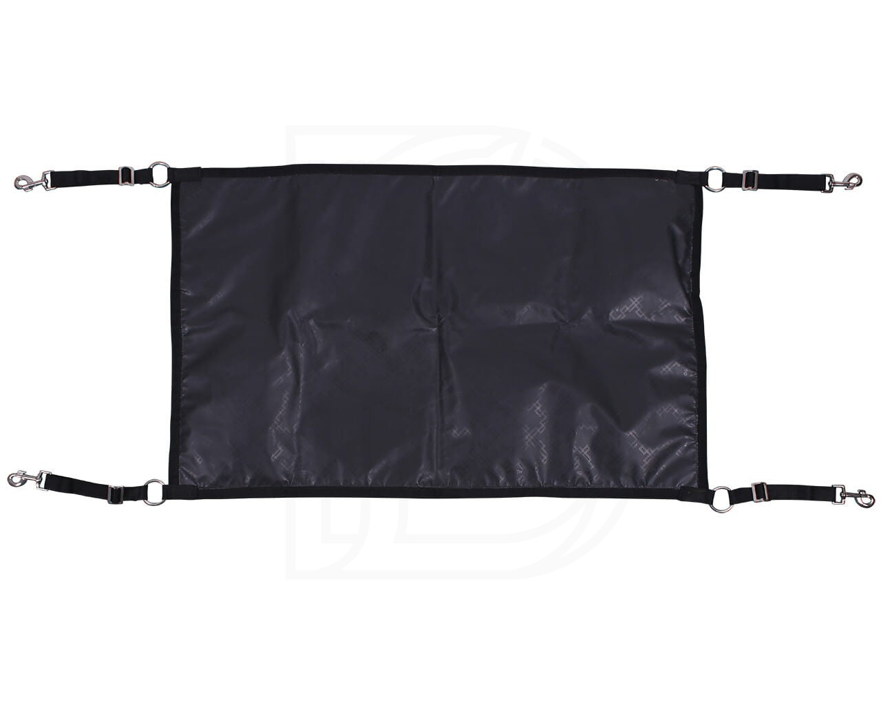 Kurtyna została zaprojektowana z myślą o funkcjonalności i wygodzie użytkowania. Jej kompaktowy rozmiar 60 x 95 cm sprawia, że świetnie nadaje się jako krótka osłona boksu, zapewniająca estetyczne wykończenie oraz możliwość wydzielenia przestrzeni. Może być używana zarówno jako element dekoracyjny, jak i praktyczne wyposażenie stajenne, szczególnie podczas wyjazdów na zawody.