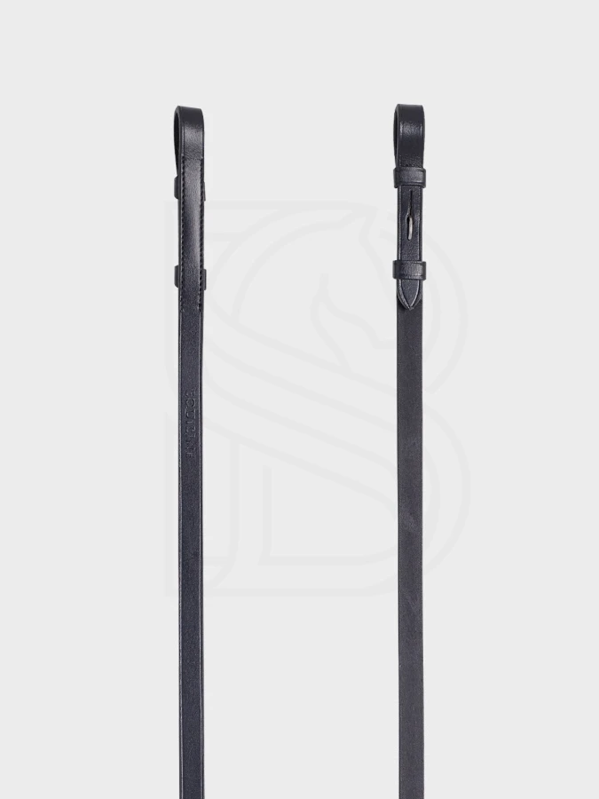 wodze skórzane do munsztuku Equiline plain leather reins for weymouth bridle with hook & stud closure