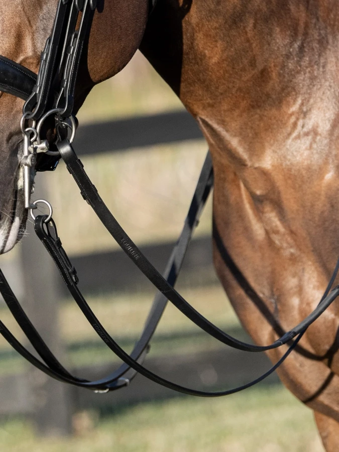 Skórzane wodze do munsztuku Equiline to klasyczny model stworzony z myślą o jeźdźcach ceniących elegancję, precyzję działania oraz wysoką jakość wykonania. Przeznaczone do ogłowia podwójnego, doskonale sprawdzają się jako druga wodza do munsztuku, zapewniając subtelny kontakt i wygodę użytkowania podczas jazdy.